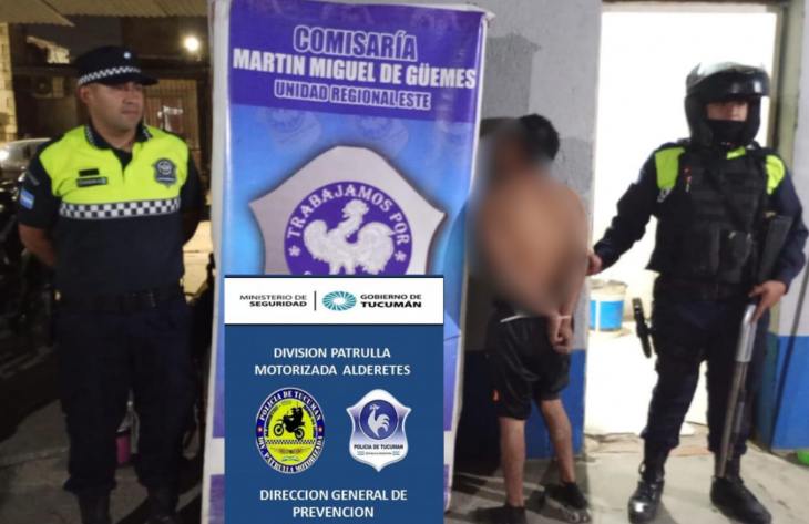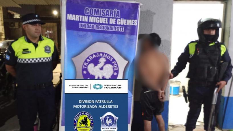 Un individuo fue apresado por un equipo de la División Patrulla Motorizada Alderetes, este domingo, mientras intentaba perpetrar un delito en el barrio Antena.
