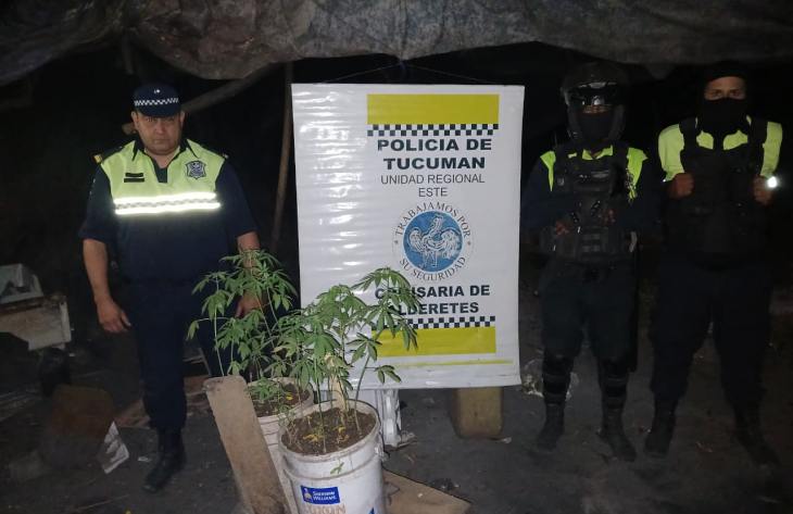 El siniestro ocurrió en la calle Independencia al 800, en Los Gutiérrez de esta ciudad, donde el personal de Bomberos logró sofocar el fuego sin que se registraran daños importantes. Al inspeccionar en el interior del descampado, los efectivos hallaron una precaria construcción en la que había dos tachos plásticos con plantines de marihuana. Allí se encontraba su morador, un joven de 30 años.