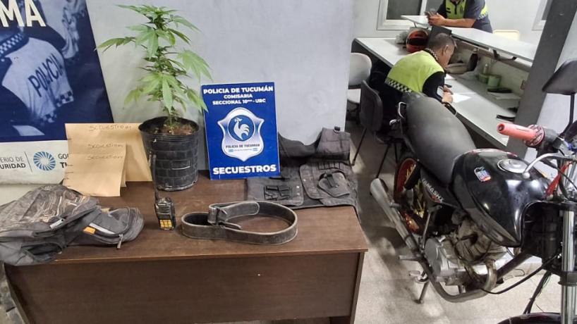 El procedimiento fue realizado en un domicilio de calle Isabel La Católica al 100 de la Capital tucumana: Secuestraron una planta de marihuana, flores y bagullos de la misma sustancia, recortes para su fraccionamiento, una balanza de precisión, un handy de igual características al usado por la fuerza policial, un chaleco y un cinturón táctico y un celular.