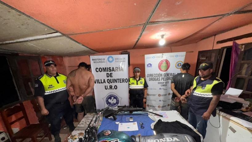 Policías de la Comisaría Villa Quinteros allanaron el domicilio de un hombre acusado de amenazar de muerte a otro. Allí encontraron una moto (usada al momento de cometer el hecho), dos armas de fuego, vestimenta del acusado (que usó al momento de concretar el delito), una balanza de precisión, recortes, cocaína y envoltorios con la misma sustancia.