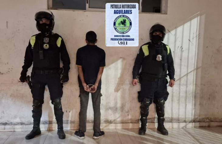 En recorridos que realizaron en la noche del miércoles para prevenir el delito, los efectivos de la División Patrulla Motorizada de Aguilares detuvieron a un joven que tenía un pedido de captura a nivel nacional.