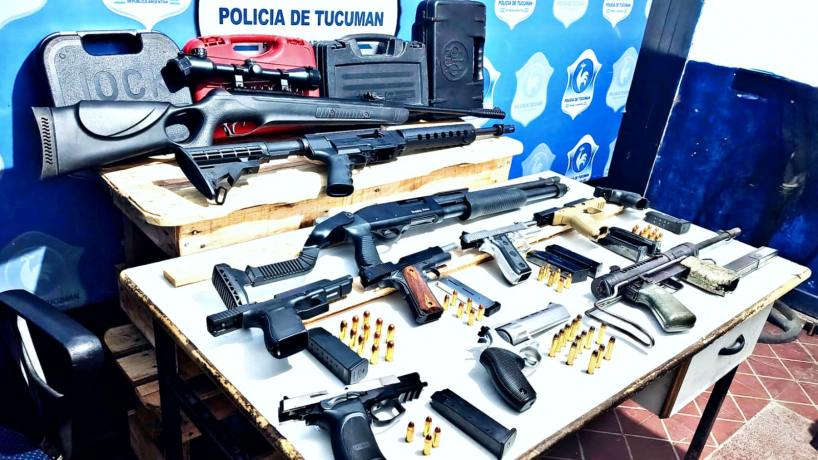 Esta medida se llevó a cabo este miércoles en un inmueble ubicado en Mario Bravo tercera cuadra en la localidad de Banda del Río Salí, y concluyó con el hallazgo de armas: varias pistolas semiautomáticas, un revólver, dos escopetas y una carabina además de decenas de municiones de distinto calibre que fueron secuestradas por orden judicial.