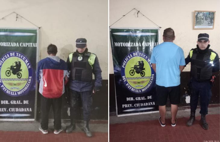 Dos hombres, de 37 y 48 años, fueron aprehendidos a manos de personal de la División Patrulla Motorizada Capital por diferentes hechos de violencia.