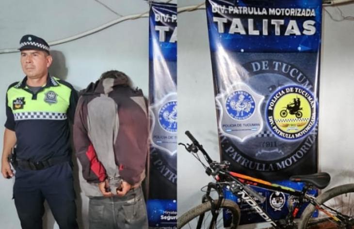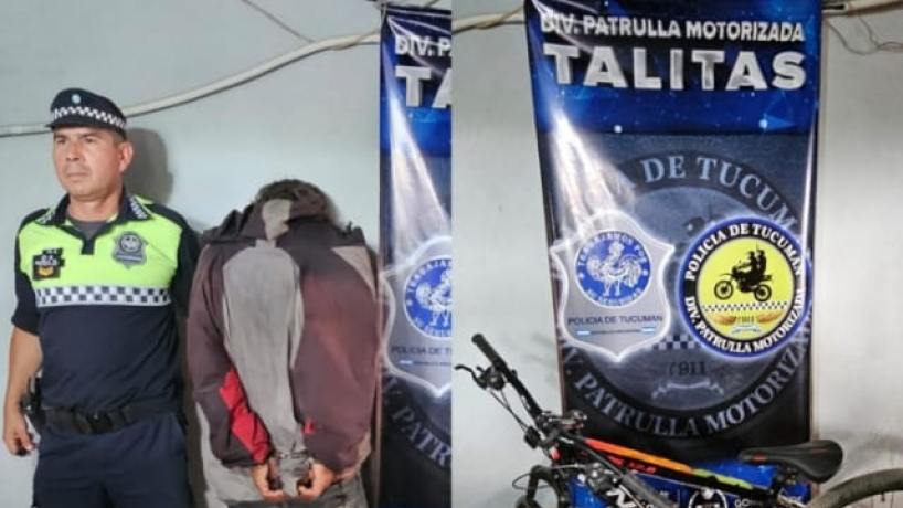 En la siesta de este jueves, personal de la División Patrulla Motorizada de Las Talitas que realizaba recorridos preventivos por la zona de calle Serafín López y un pasaje cercano aprehendió a un hombre que intentó darse a la fuga con una bicicleta que había sustraído de una vivienda del sector.