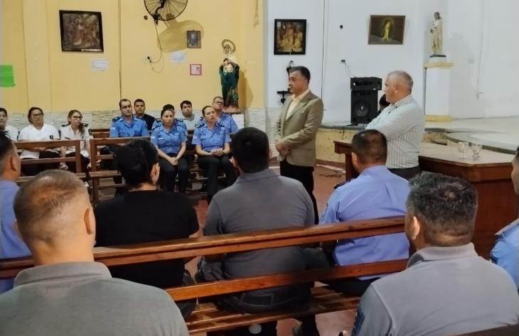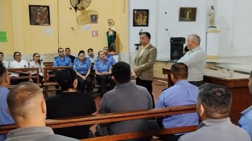 En la mañana de este viernes, el subsecretario de Asuntos Penitenciarios, Sebastián Tula Rizo, junto al director del penal de Villa Urquiza, Antonio Quinteros, se reunieron en la capilla del establecimiento con todos los oficiales que se encuentran en actividad.