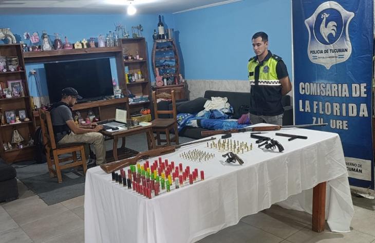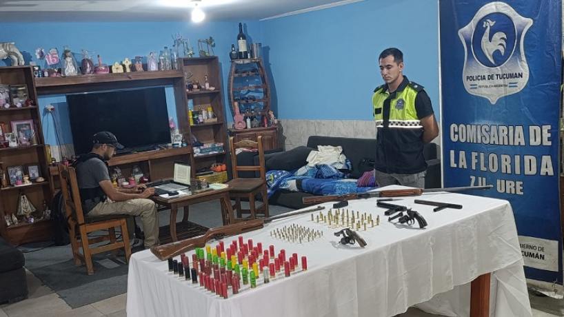 Tras solicitar una orden de allanamiento, los uniformados irrumpieron de manera simultánea dos viviendas de la avenida San Ramón durante la jornada de este sábado, en las que hallaron un arsenal de armas (entre dispositivos de fábrica y hechos de manera casera) y municiones de diversos calibres.