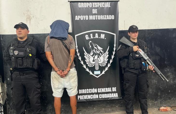 Un hombre que estaba prófugo de la Justicia por una causa de amenazas fue capturado este lunes en un procedimiento realizado por los efectivos de la División del Grupo Especializado de Apoyo Motorizado (GEAM).
