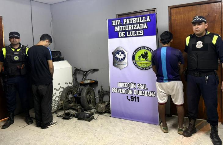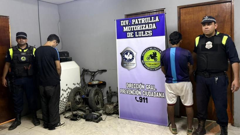 Dos jóvenes, que habían robado una motocicleta y luego la desarmaron, fueron aprehendidos por los efectivos de la División Patrulla Motorizada San Isidro de Lules a las pocas horas del hecho.