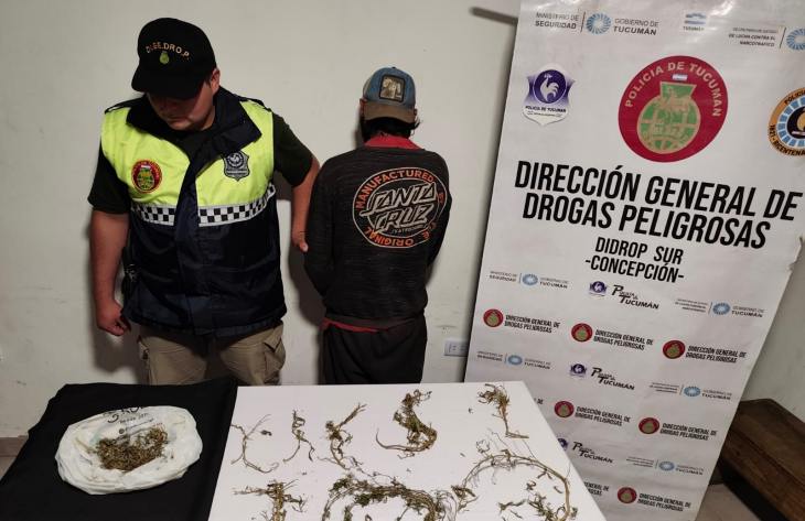 En el marco de tareas preventivas, mediante recorridos, la Policía demoró a un hombre que tenía en su poder plantas de marihuana, cogollos y envoltorios de la misma sustancia.