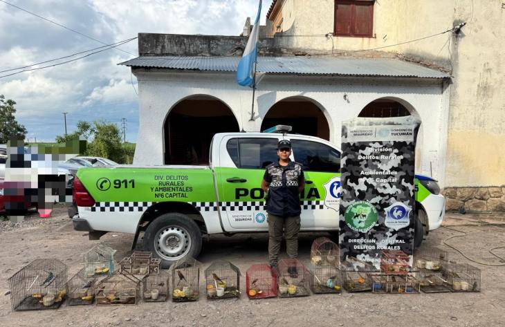 En circunstancias que un equipo de la Unidad Especial realizaba tareas preventivas por la capital tucumana, observó al fondo del patio de una casa, varias jaulas que contenían a las aves. Se trataba de diversas especies: Jilgueros, Corbatitas, Reyna Mora, Mixto, Brasita, Celestino, Soldadito y Chingolito. Además, tenían a la vista 16 jaulas y dos tramperas.