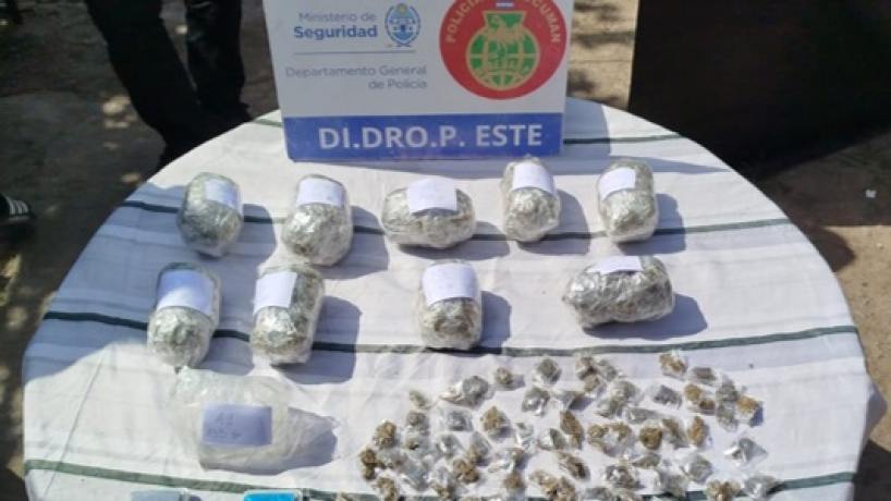 Al notar la cercanía de la policía el sospechoso se dio a la fuga, pero fue interceptado cuando ingresaba a su vivienda. En la requisa, los efectivos constataron la presencia de marihuana fraccionada en bagullos y también compactada; por lo que se informó a la UFINAR que ordenó las pruebas de campo a la Dirección de Drogas Peligrosas Este.