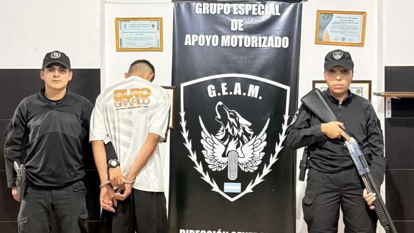 El hecho ocurrió pasadas las 16 horas, cuando agentes de la División Grupo Especial de Apoyo Motorizado realizaban recorridos preventivos en la intersección de las calles San Miguel y Chile y detuvieron a un hombre para un control rutinario.