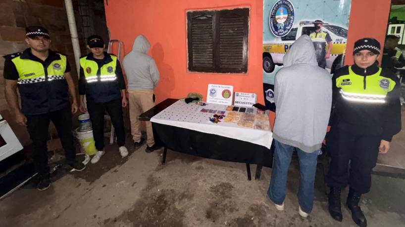 Por infracción a la Ley 23.737 de Estupefacientes, secuestraron la droga y los objetos, y fueron aprehendidos un hombre de 30 años y una mujer de 28 años.