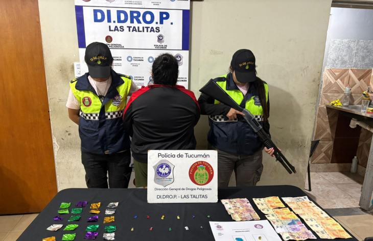 El procedimiento fue realizado por un equipo de la Dirección Drogas Peligrosas Las Talitas, en circunstancias que realizaban tareas preventivas. Al llegar a la intersección de las mencionadas calles, observaron a la imputada intercambiando drogas por dinero con otra persona que logró escapar. Cuando los causantes advirtieron la presencia policial emprendieron al huida, donde la mujer logró ser alcanzada cuando ingresó a una casa donde pretendía esconderse.