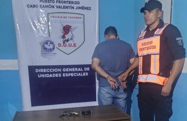 Al realizar la requisa, los uniformados hallaron dentro de una mochila un revólver calibre 38 con cinco cartuchos en su interior, además de una caja con otros diez cartuchos del mismo calibre.