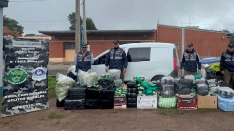 Efectivos de la División Delitos Rurales y Ambientales controlaron una camioneta con una importante cantidad de bultos que motivaron la inspección.
